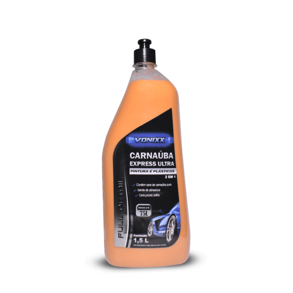 Con carnauba Ultra Express, puede hacer un encerado rápido rápido, con alta calidad y bajo costo, además puede ser utilizada para el mantenimiento y la renovación de los plásticos internos y externos. Carnauba express Ultra deja un acabado impecable con una sensación aterciopelada y brillo que dura semanas. Una característica muy importante de este producto es su rendimiento: con 1,5 L de producto, es posible hacer hasta 75 L, Esta alta concentración reduce drásticamente los costes del detalle del coche profesional, sin perder la calidad del servicio.